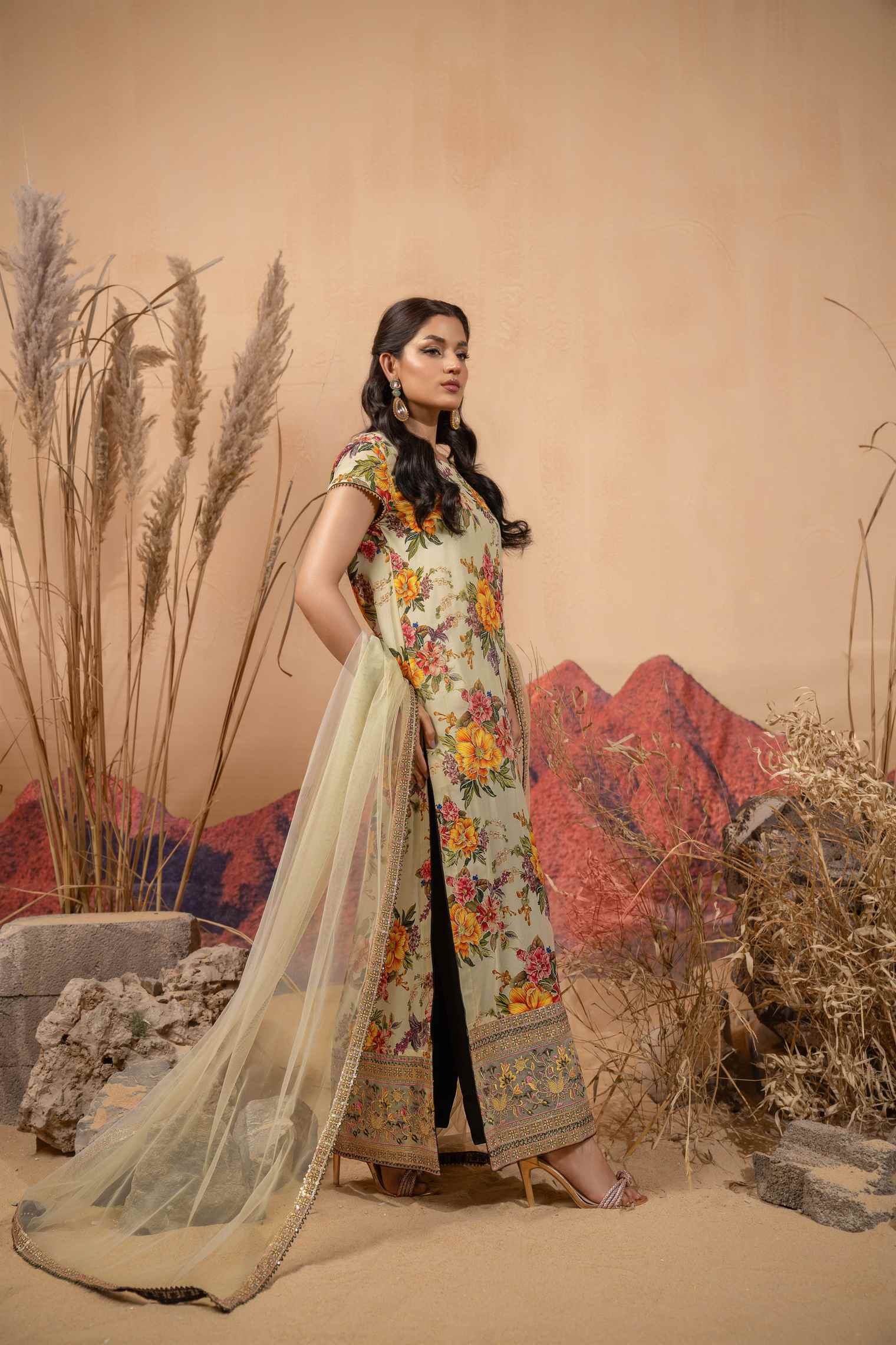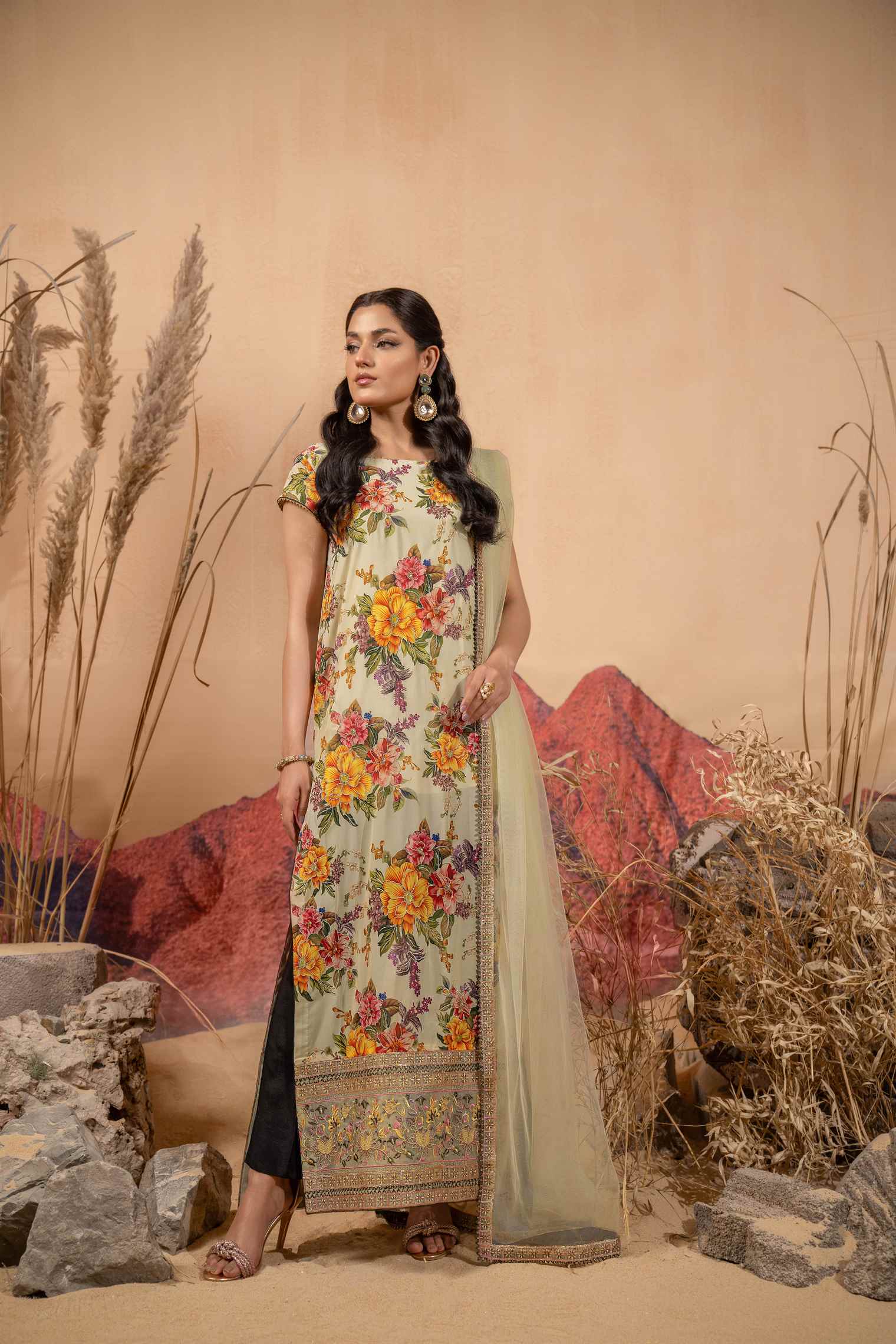 v Embroidered Dupatta Border