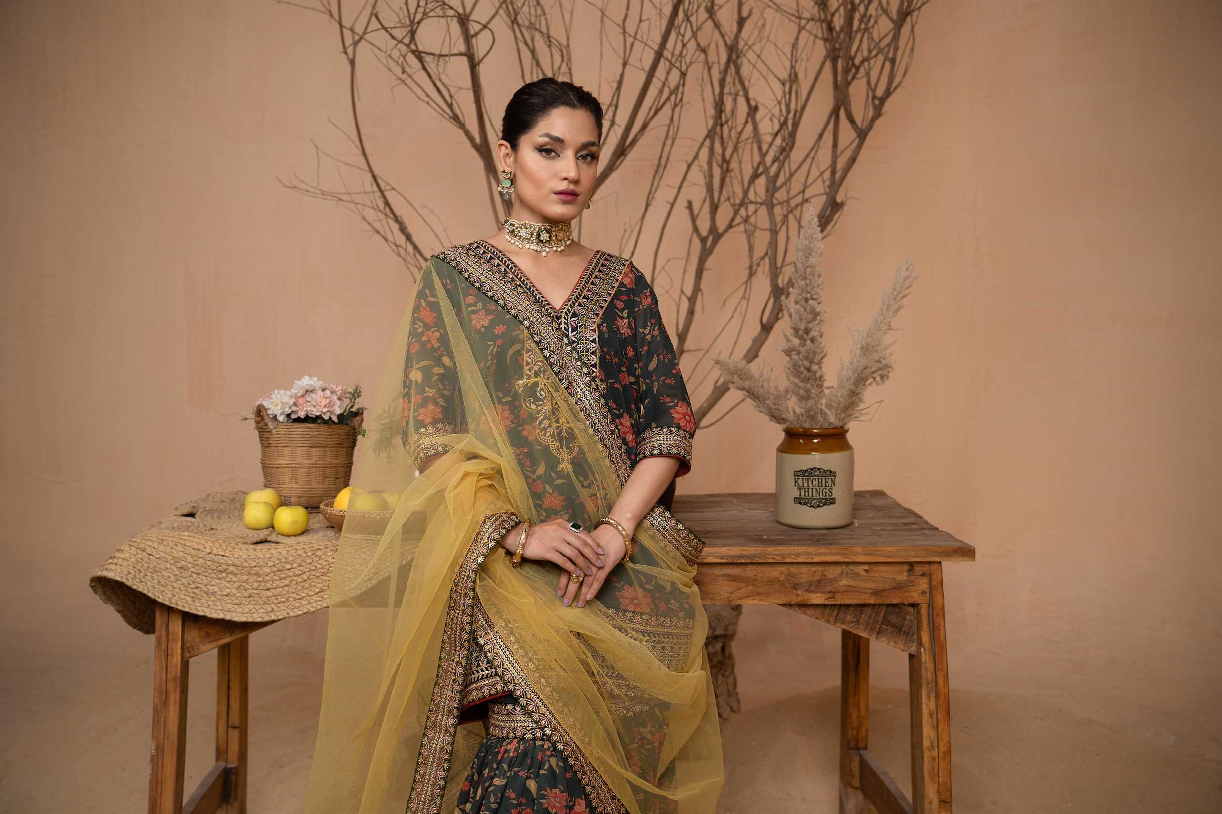 v Printed Green Georgette Chiffon Gharara